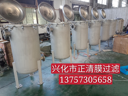 不銹鋼袋式過濾器(機(jī)),是一種壓力式過濾裝置,主要有過濾筒體、過濾筒蓋和快開機(jī)構(gòu)、不銹鋼濾袋加強(qiáng)網(wǎng)等主要部件組成,濾液由過濾機(jī)外殼的旁側(cè)入口管流入濾袋,濾袋本身是裝置在加強(qiáng)網(wǎng)籃內(nèi),液體滲透過所需要細(xì)度等級(jí)的濾袋即能獲得合格的濾液,雜質(zhì)顆粒被濾袋攔截。該機(jī)更換濾袋十分方便,過濾基本無物料消耗。